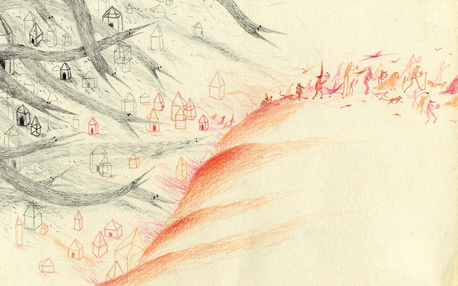 Cuando me senté con Ghaida para jugar a inventar cuentos, al empezar el proyecto, nada podría haberme preparado para la aventura que tenía delante. Ghaida hablaba bien inglés, pero le faltaba algo de vocabulario. Así que, al no conocer la palabra en inglés para “cazador”, me explicó que el rey “le hacía a los animales del bosque lo que hace la policía a nosotros, cuando viene detrás nuestro y nos dispara”. Era el cuento por detrás del cuento: ella eligió que su protagonista fuera, no un héroe cubierto de justicia y razón, sino el perpetrador de una injusticia que se ve forzado por las circunstancias a ponerse en la piel de sus víctimas. Así, el rey aprende a empatizar con ellas y pasa a protegerles de otros cazadores en su reino.